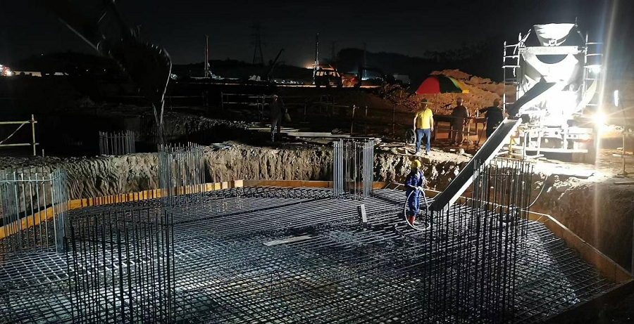 因園區基礎配套設施不完善,項目部進場后隨即修建現場臨時道路,并修建三級引水裝置在廠區旁河道中取水,有效克服項目前期三通一平不達標的實際困難,為項目順利開工奠定基礎。